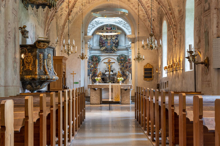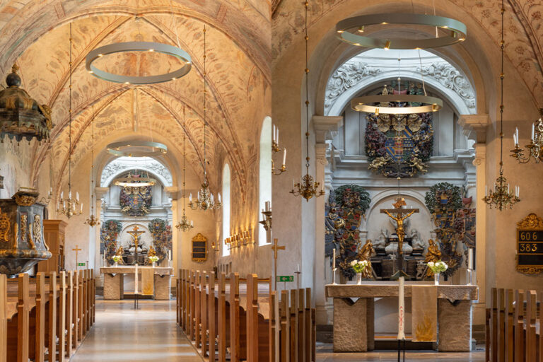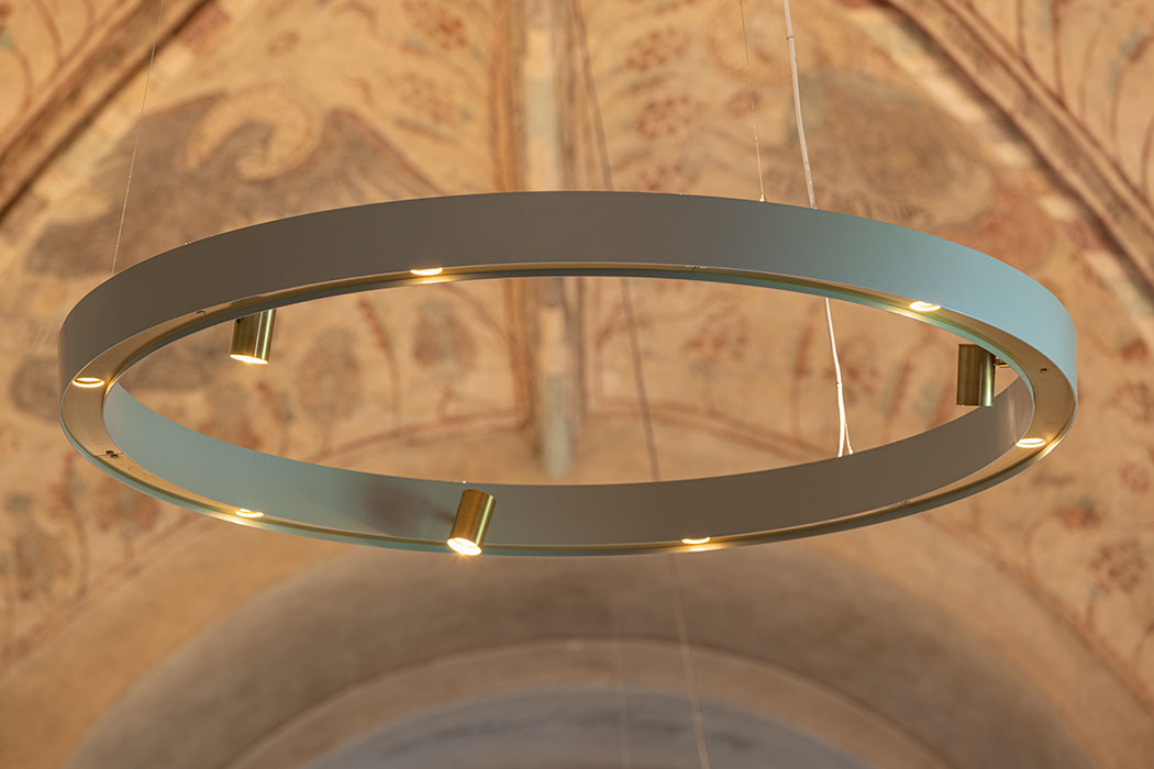 Samtidigt så får Koret en framträdande roll där altaret accentueras med integrerade spotlights i ljusringarna.
